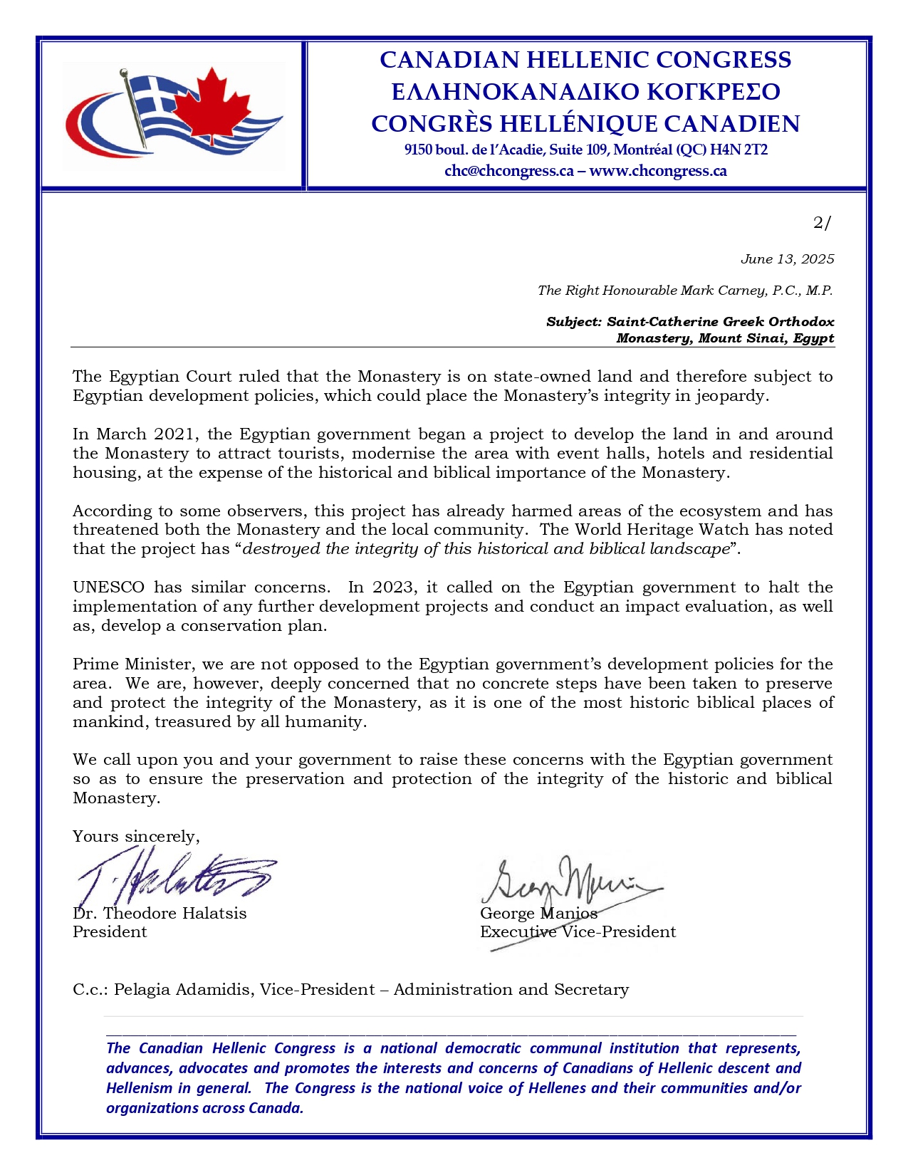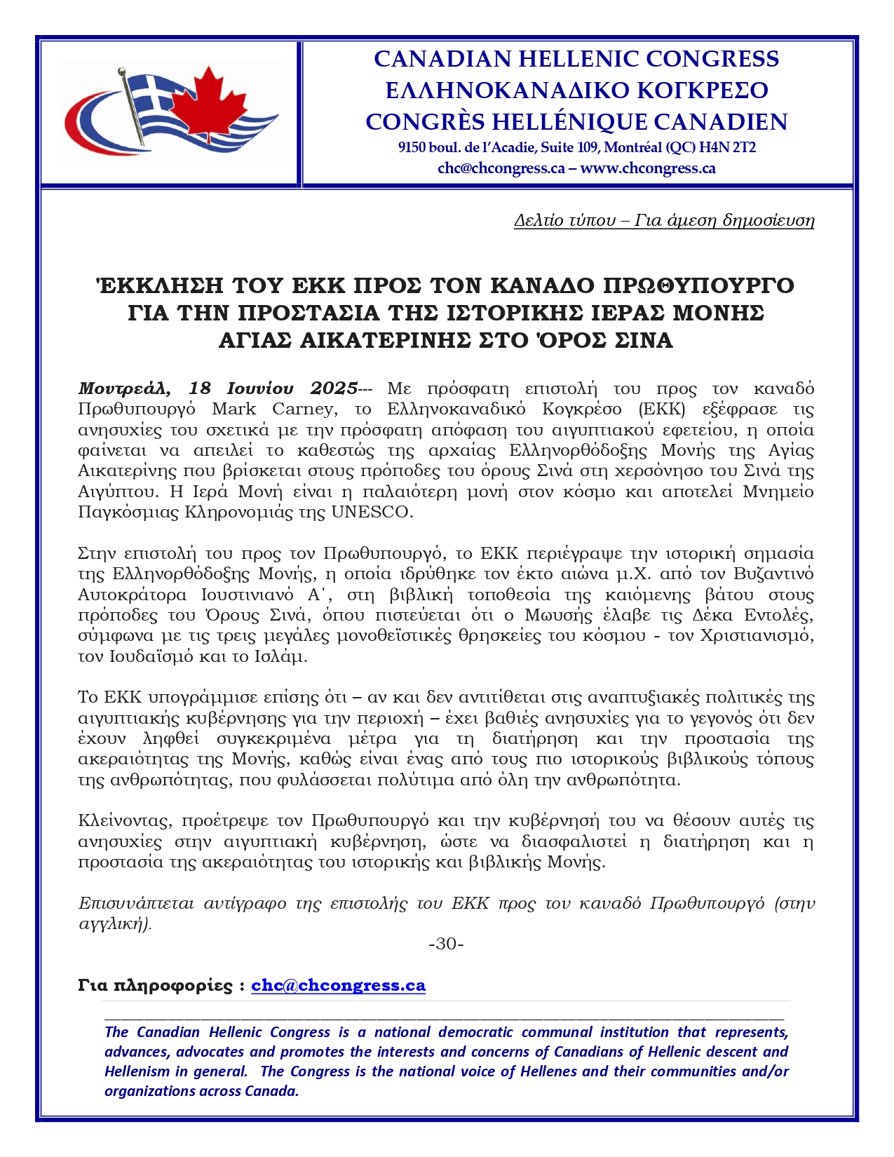 Ακολουθεί η επιστολή του Ελληνοκαναδικού Κογκρέσου προς τον καναδό Πρωθυπουργό (στην αγγλική)